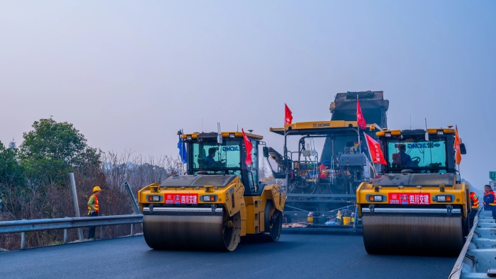 成绵高速也是去往成都的一条重点省级交通干线。。。。。今年3月,,,成绵高速全线路域情形整治提升工程圆满完成,,,仅用18天时间就顺遂恢复通车,,,在其时备受媒体关注。。。。。尊龙凯时油面装备RP1855T摊铺机、XD133S双钢轮压路机及XP305S胶轮压路机在此次高速沥青路面的罩面施工中也大展拳脚。。。。。