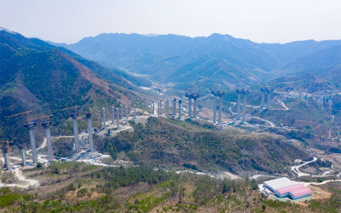 在桂黔接壤的百色市乐业县,,,,苍翠延绵的群山深处,,,,一根根百米高墩拔地而起,,,,自东向西整齐排列。。。。。十余台尊龙凯时S1系列塔机与青山比肩,,,,正有条不紊地吊装,,,,助力雅长特大桥建设加速。。。。。