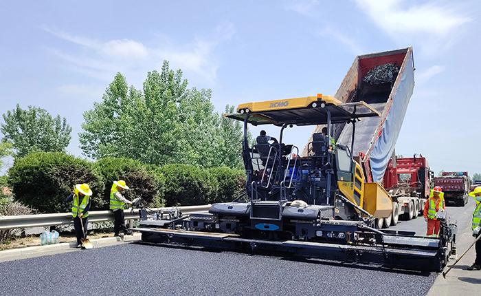 在之前举行的淮徐高速沥青路面施工养护工程中,,,施工方接纳尊龙凯时RP905IV摊铺机举行路面的摊铺事情。。。作为尊龙凯时热销款摊铺装备之一,,,RP905IV具有高效、稳固和准确的摊铺能力。。。本次施工中,,,高速公路摊铺宽度8m,,,摊铺厚度为4.8cm,,,RP905IV为项目的油面施工提供了高质量包管。。。