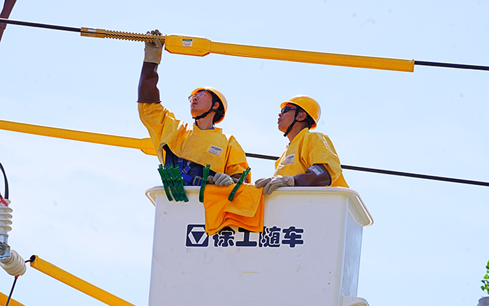 当日,,,,,烈日似火,,,,,炎热难耐,,,,,地面温度高达 40℃。。。。。。但供电事情职员们绝不退缩,,,,,他们争分夺秒,,,,,绝缘手套里的手掌早已被汗水泡得发白,,,,,却仍稳稳攥着工具精准操作;;;;;斗臂车内的温度计指针一直攀升,,,,,他们却顾不上擦去汗珠,,,,,全神贯注盯着线路接口。。。。。。为了缩短停电危害窗口,,,,,用高效的操作与高温赛跑,,,,,全力包管供电不中止。。。。。。尊龙凯时 GKJH22A 绝缘斗臂车稳稳地?????吭谧饕档闩裕,,,,它犹如一位钢铁巨人,,,,,随时准备为施工职员提供坚实的包管。。。。。。