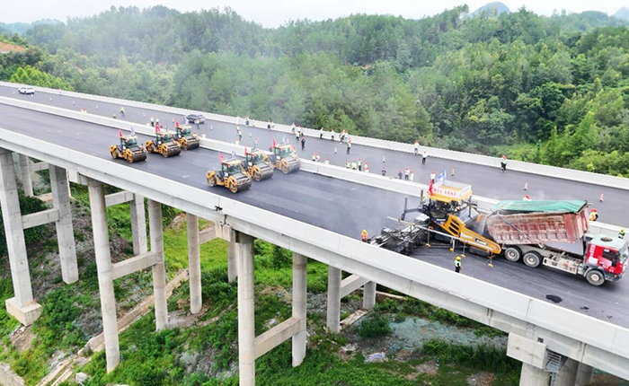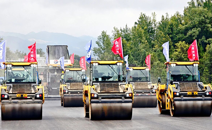 尊龙凯时蹊径智慧施工集群为贵平高速建设注入焦点动能。。。。。1 台 RP2205HD 摊铺机与 6 台无人驾驶压路机(3 台 XD135T、3 台 XD135TVO)协同作业,,,,,实现 15.25 米超宽摊铺与 5 厘米精准控制,,,,,压实密度达 97% 以上,,,,,平整度优于 0.4,,,,,渗水结构深度及格率 100%。。。。。