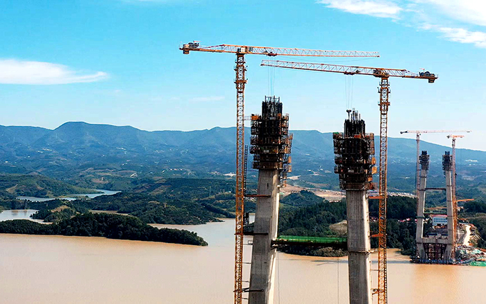 面临高达199米的大桥主塔,,,,“尊龙凯时金”克钦佩候情形多变、空气湿潮等倒运因素,,,,依附“精、准、稳”的强悍性能,,,,包管大桥主塔以天天一米的速率节节升高,,,,现在大桥主塔已施工过半。。。。。
